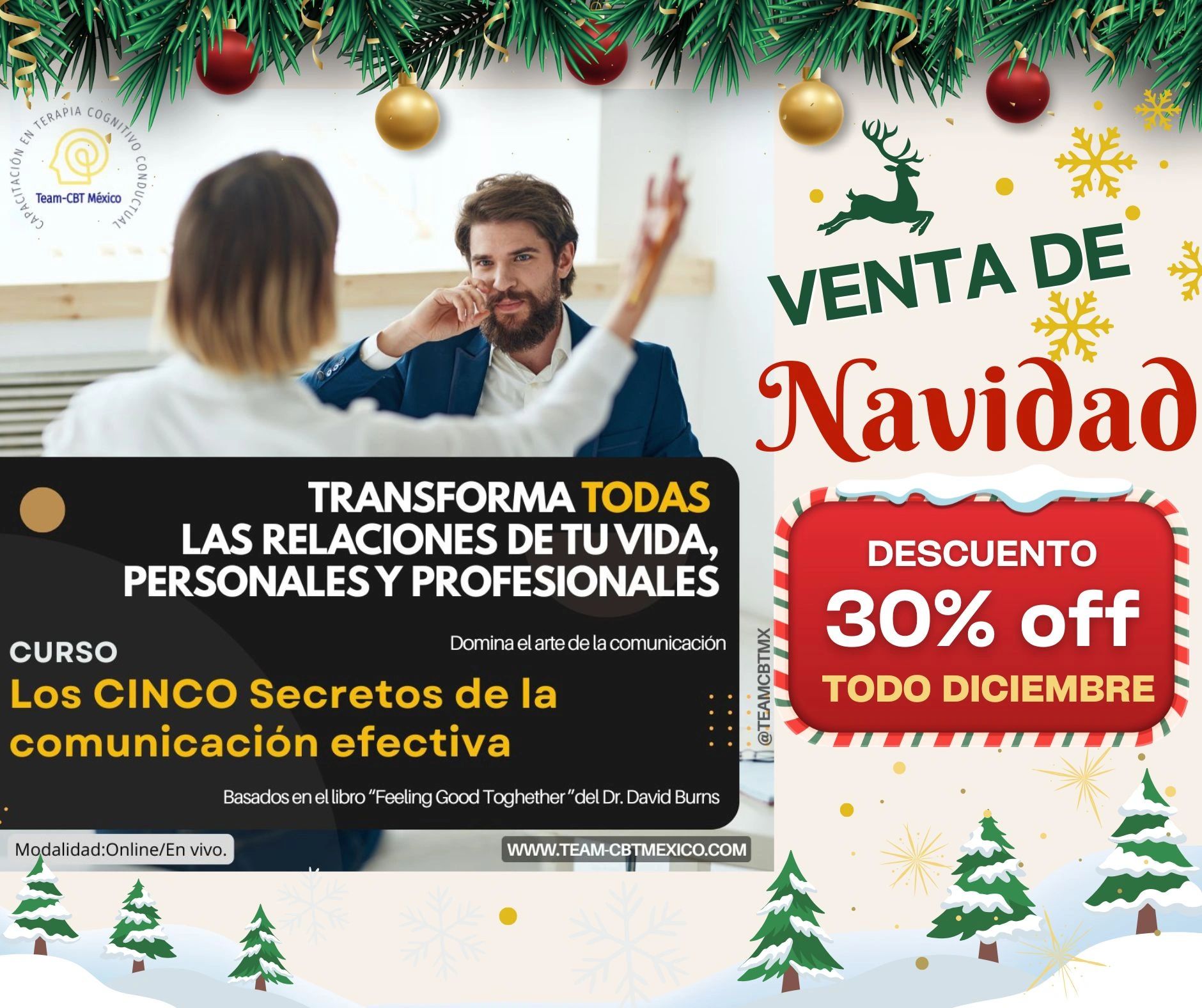 Durante 6 semanas, aprenderás a mejorar tus habilidades de comunicación con el método creado por el Dr. David Burns, autor de "Feeling Good Together" y uno de los pioneros de la terapia cognitivo conductual.