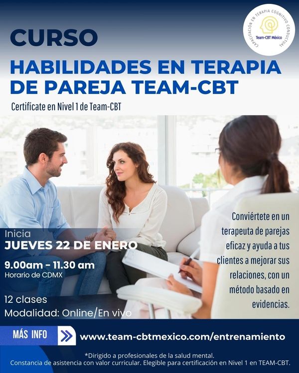 Dirigido a profesionales de la salud mental que deseen aplicar el modelo TEAM CBT en su práctica clínica. No se requiere experiencia previa con el enfoque.